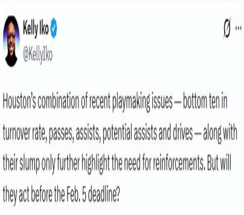乍一看,考慮到當前的形勢,火箭隊在交易截止日前保持謹慎態(tài)度是可以理解的。但如果球隊持續(xù)表現(xiàn)不佳,在積分榜上的排名繼續(xù)下滑,那么管理層很可能會做出調(diào)整。