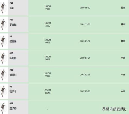 前鋒:楊舒予,孫宇,李星諾,張茹,羅欣棫,張梓涵,唐子婷