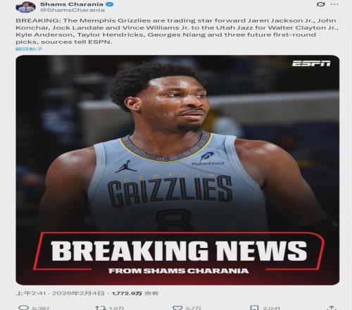 北京時間2月4日凌晨,據(jù)NBA名記Shams報道,灰熊隊將小賈倫-杰克遜、康查爾、蘭代爾和小文斯-威廉姆斯交易至爵士隊,4換7得到凱爾-安德森、小克萊頓、亨德里克斯、尼昂和3個首輪簽。這是本賽季至今,涉及人數(shù)最多的一筆交易。