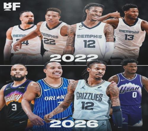 當(dāng)年莫蘭特?fù)P言:“灰熊在西部沒有對手!”狄龍則表示:“灰熊是王朝球隊?!倍潭趟哪?,那支灰熊已經(jīng)分崩離析?;倚茉?J交易中得到3個首輪分別是:2027年首輪(騎士/森林狼/爵士順位最高的)、2027年首輪(湖人)、2031年首輪(太陽)。