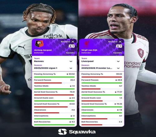 2025年初,因雅凱在法乙表現(xiàn)出色,急于保級的雷恩提前召回雅凱,為此支付了90萬歐元違約金。雅凱在賽季后程11次首發(fā),幫助雷恩成功保級。本賽季上半程,他在法甲首發(fā)19次,就讓利物浦下定決心“預購”未來。雅凱在法甲的數(shù)據(jù)非常驚艷,場均1.5次搶斷和1.1次攔截,贏得4.4次對抗(成功率66%)和1.9次爭頂(成功率63%),搶斷成功率達到67%,空中對抗能力本賽季在五大聯(lián)賽U23中后衛(wèi)排名第3(76%)。