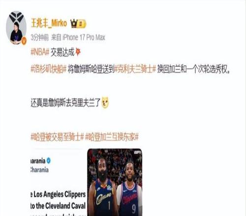 1換2大交易!哈登加盟騎士!國內(nèi)名嘴熱議,字母哥下家也浮出水面