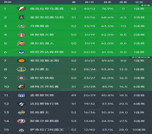 隨著湖人4分險勝,勇士逆轉太陽,西部最新排名出爐!火箭第4