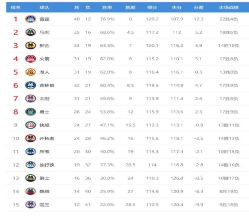 今日比賽后西部排名沒有變化,只是勝場(chǎng)差距有所變化。