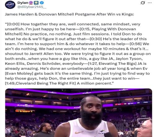 相比于擊敗聯(lián)盟倒數(shù)第一的國王隊,更加讓騎士隊開心的是哈登無縫融入球隊,首秀低開高走拯救新東家。