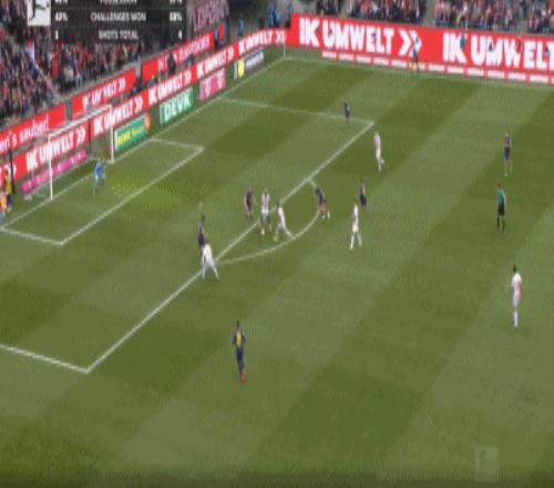 第51分鐘,蒂爾曼禁區(qū)內(nèi)倒地搓射得分,科隆1-1萊比錫