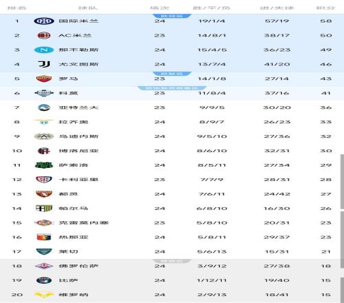 本輪戰(zhàn)罷,意甲積分榜的形勢進一步明朗,國際米蘭以58分繼續(xù)強勢領(lǐng)跑,對第二名AC米蘭的領(lǐng)先優(yōu)勢擴大到了8分,那不勒斯積49分排名第三,驚險戰(zhàn)平的尤文圖斯積46分,暫列第四,但僅領(lǐng)先身后的羅馬3分,歐冠資格的爭奪依然充滿變數(shù)。
