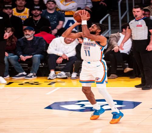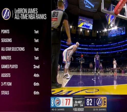 次節(jié)開(kāi)場(chǎng)以賽亞-喬再度命中三分,他面對(duì)里夫斯突破都命中,短短14分鐘拿到16分幫助雷霆拉開(kāi)到兩位數(shù)的差距被換下。湖人的第二核心里夫斯依舊有登場(chǎng)限制,加之詹姆斯連續(xù)出現(xiàn)了低級(jí)失誤,雷迪克用一套小陣容繼續(xù)丟分,海斯登場(chǎng)后湖人的三分回暖縮小到6分打停雷霆。詹姆斯突破暴扣,半場(chǎng)詹姆斯8分3助攻,里夫斯12分6助攻。