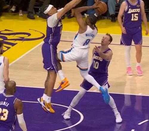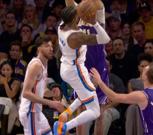 看著都疼!杰倫威踢到海斯要害被吹進(jìn)攻犯規(guī)雷霆挑戰(zhàn)失敗