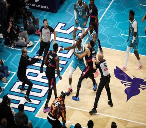 活塞黃蜂爆發(fā)群毆驚動(dòng)警察斯圖爾特再現(xiàn)蠻牛沖撞