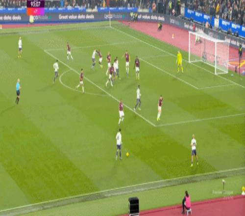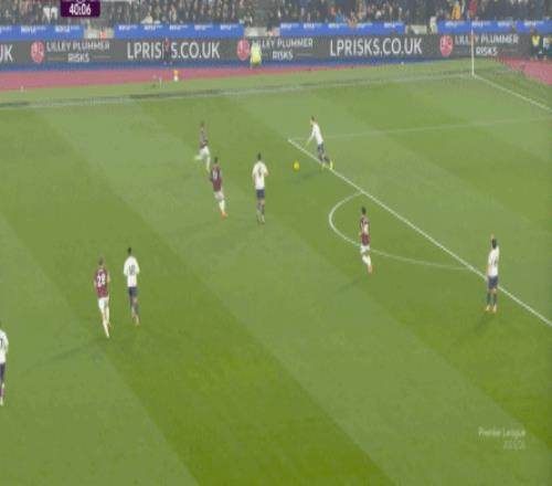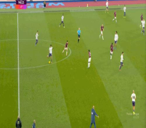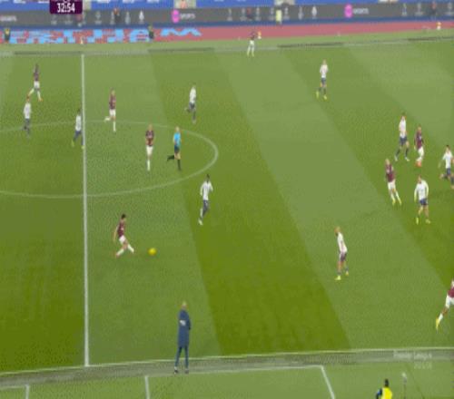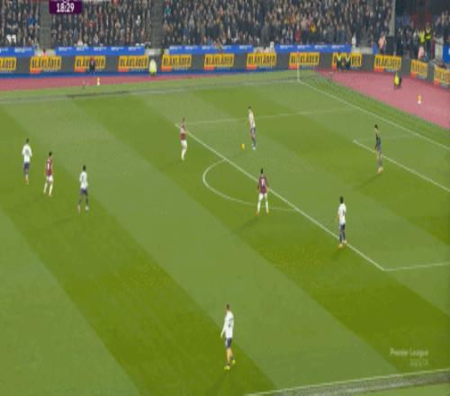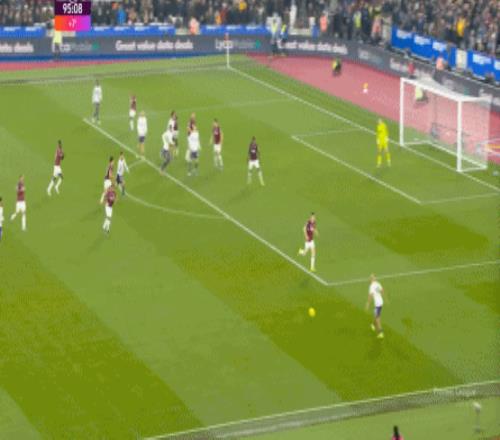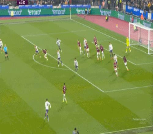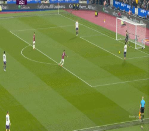 而這種身體層面帶來(lái)的問(wèn)題,不僅會(huì)出現(xiàn)在有球的時(shí)候,也會(huì)出現(xiàn)在無(wú)球的時(shí)候,比如這次高位逼搶,實(shí)際上只有布魯諾一人有效參與,于是西漢姆聯(lián)后衛(wèi)可以先抬頭觀察,再低頭起腳,便和鮑文一起制造了前場(chǎng)的定位球: