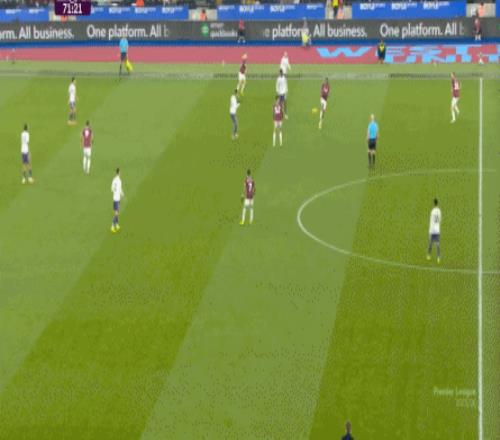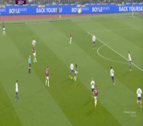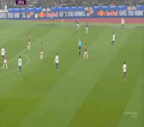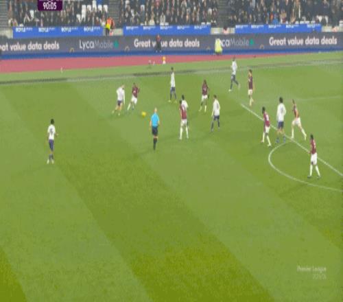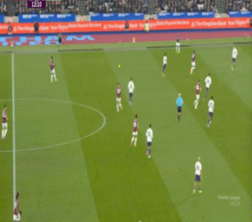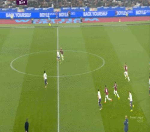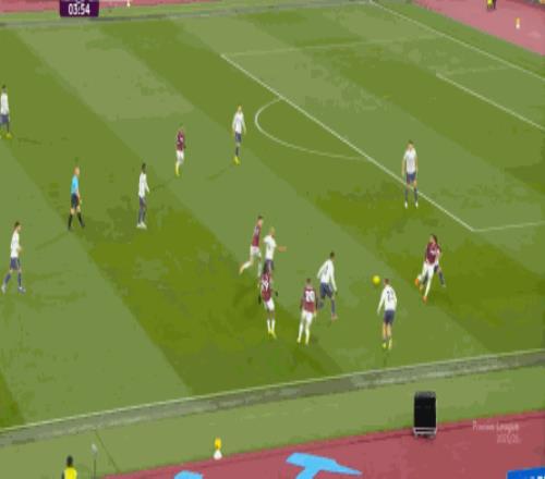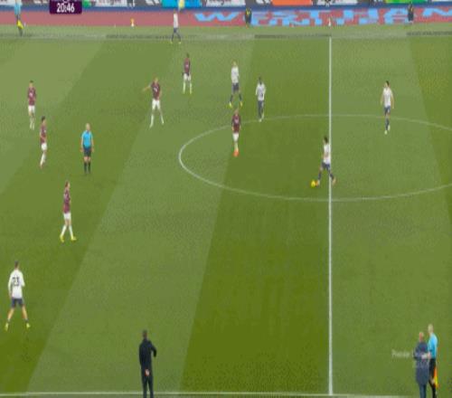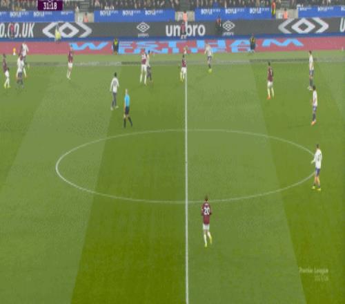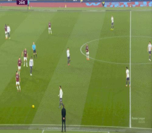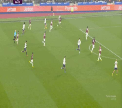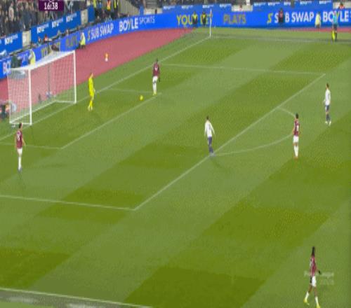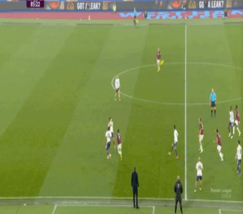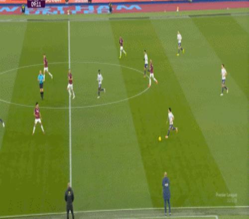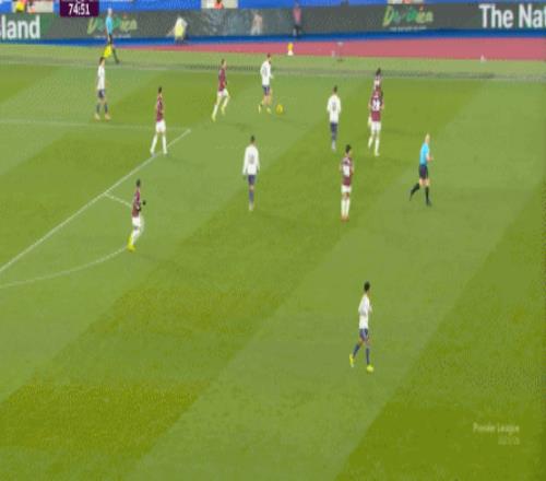 一次抓曼聯(lián)封閉空間不力,被西漢姆聯(lián)轉(zhuǎn)移到弱側(cè)形成進(jìn)攻: