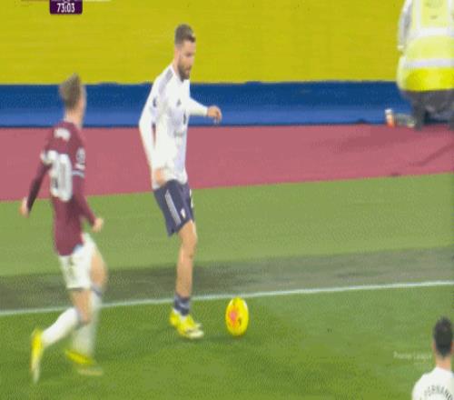 而非??上У氖?,在第22分鐘,曼聯(lián)沒(méi)能如同此前幾場(chǎng)比賽一樣,用定位球?yàn)樽约喉樌_分,這次梅努的跑位變成了虛晃,球隊(duì)從角球點(diǎn)直接找盧克-肖,卻被對(duì)手撲出: