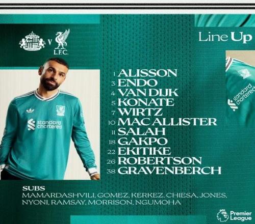 利物浦客戰(zhàn)桑德蘭:遠(yuǎn)藤航、薩拉赫首發(fā),羅伯遜、維爾茨出戰(zhàn)