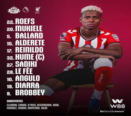 桑德蘭首發(fā):22-羅埃夫斯、20-穆杰萊、5-巴拉德、15-阿爾德雷特、17-雷尼爾多、32-休姆、27-薩迪基、28-勒費(fèi)埃、10-尼爾松-安古洛、19-哈比卜-迪亞拉、9-布羅貝伊