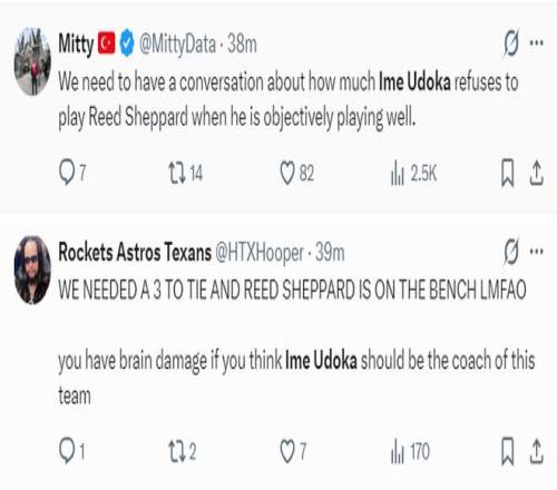 火箭記者:我們需要找烏度卡好好談?wù)?,為什么謝潑德如此出色關(guān)鍵時刻卻不讓他登場?