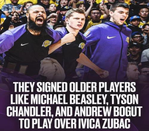 7、2018-19賽季,湖人簽下了比斯利,并且寧可讓比斯利打替補(bǔ)中鋒,也不給祖巴茨鍛煉機(jī)會(huì),此外,湖人還簽下了36歲的錢德勒,后者場均上場16.4分鐘,角色和上場時(shí)間均在祖巴茨之前;