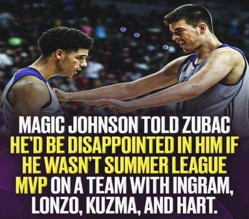 2、在被選中后,魔術(shù)師曾告訴祖巴茨,如果他沒有拿到夏季聯(lián)賽MVP,他會(huì)讓魔術(shù)師感到失望,而在當(dāng)時(shí),湖人陣容中還有英格拉姆、鮑爾、庫茲馬、哈特;