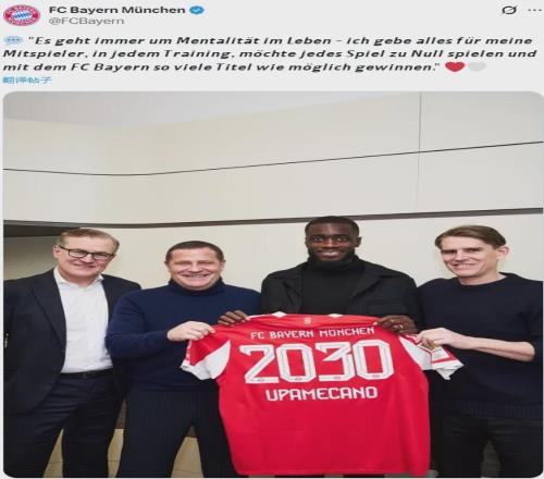 官方:拜仁宣布和烏帕梅卡諾續(xù)約到了2030年,這名27歲的中衛(wèi)此前的合同今年夏天到期。