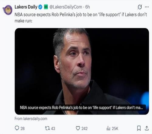 四天之前,根據(jù)湖人媒體Lakers Daily的報道,佩林卡在交易截止日前沒有進行大面積的交易是為了囤積資產在今夏休賽期繼續(xù)猛追揚尼斯-阿德托昆博,佩林卡的帥位也跟湖人下半賽季的戰(zhàn)績、季后賽的戰(zhàn)績、今夏引進球星等有關聯(lián)。