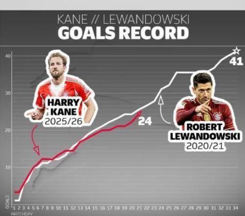 更恐怖的是效率,凱恩僅用405場(chǎng)比賽就達(dá)成了301球,場(chǎng)均0.74球。在英超賽場(chǎng),他320場(chǎng)轟入213球;轉(zhuǎn)戰(zhàn)德甲后更是如有神助,85場(chǎng)打進(jìn)88球,效率遠(yuǎn)超英格蘭時(shí)期。本賽季他在德甲已打入24球(注:根據(jù)多個(gè)搜索結(jié)果更新為26球),領(lǐng)跑射手榜。提到德甲的進(jìn)球紀(jì)錄,就不得不提萊萬(wàn)多夫斯基在2020/21賽季創(chuàng)下的單賽季41球神跡。在那個(gè)令人難忘的賽季,萊萬(wàn)在第21輪戰(zhàn)罷時(shí)打入25球 。對(duì)比本賽季的凱恩,22輪過(guò)后他已轟入26球,比當(dāng)年同期的萊萬(wàn)多1球。更重要的是,凱恩本賽季的進(jìn)球轉(zhuǎn)化率高達(dá)30.6%,射正率78.1%,這兩項(xiàng)數(shù)據(jù)都超過(guò)了萊萬(wàn)紀(jì)錄賽季的29.9%和58.6%。