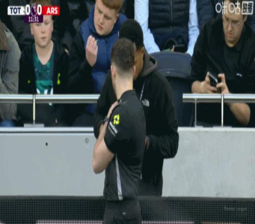 第11分鐘,邊裁設(shè)備出現(xiàn)問題,比賽短暫中斷