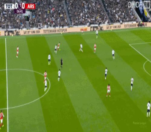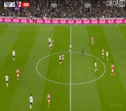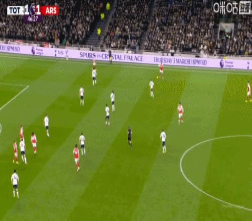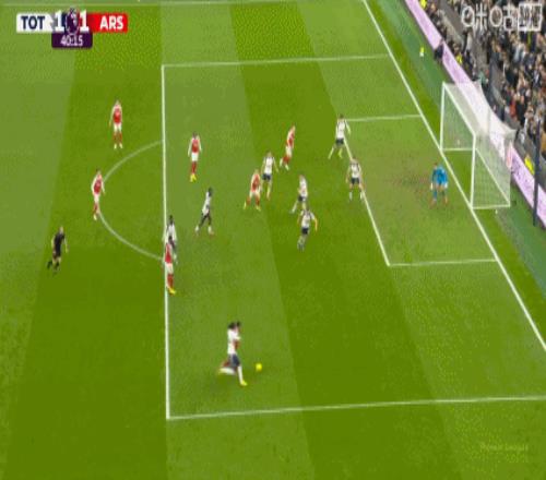 第34分鐘,賴斯帶球失誤被斷,穆阿尼破門!熱刺1-1扳平阿森納!