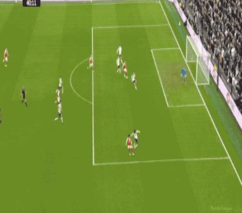 第61分鐘,熱刺防線一片混亂,薩卡的單刀射門被擋出,皮球來到埃澤的腳下,埃澤梅開二度,兩回合對陣熱刺打進(jìn)5球,效率極高。