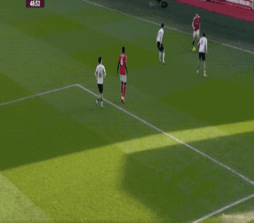 緊接著第39分鐘,森林直塞打穿防線,熱蘇斯稍一猶豫,范戴克伸腳破壞,避免單刀,紅軍又逃過一劫!