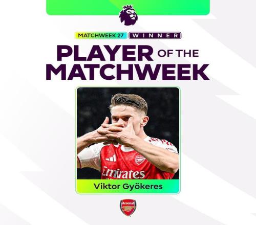 英超官方宣布,阿森納的維克托-哲凱賴什當(dāng)選為第27輪英超本周最佳球員,擊敗了奧賴?yán)?、埃澤、米爾納等人。