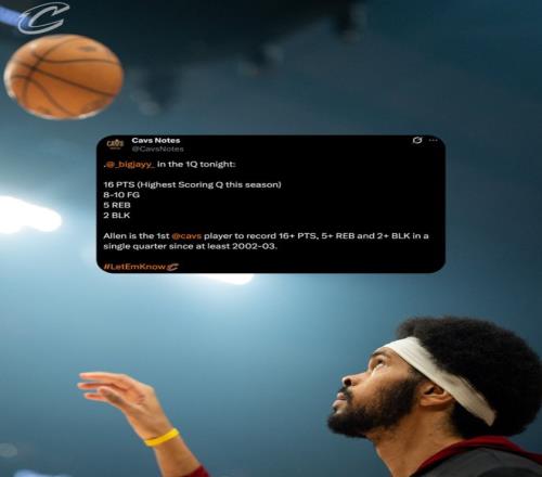 這場比賽是讓楊瀚森競爭者克林根扎心一戰(zhàn),首節(jié)在克林根的防守下,騎士隊中鋒賈萊特-阿倫9分鐘里,10中8,拿到16分5籃板1搶斷2蓋帽,命中率80%,在籃下有4次很輕松的暴扣,他成為騎士隊史02-03賽季首位單場16+5+2蓋帽的球員。