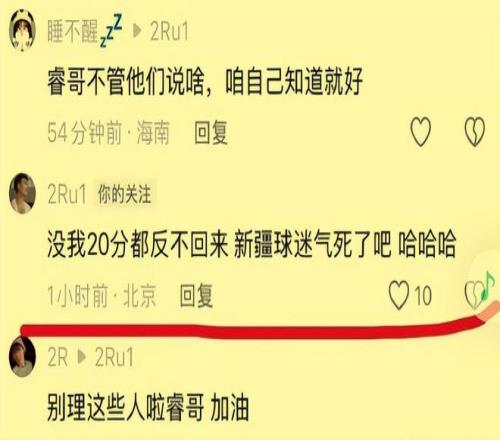 而在對陣青島隊的這場比賽投籃10中4手感冷涼,并且在關(guān)鍵時刻兩罰盡失的北京首鋼隊后場絕對主力趙睿,輸?shù)舯荣惡蟮男那楸緛響?yīng)該就不太好,所以當(dāng)他看到前東家新疆隊的球迷留言評論他現(xiàn)在所效力的北京首鋼隊本賽季的爭冠前景以及他的個人表現(xiàn)后火氣一下子就上來了,立馬怒懟了回去。