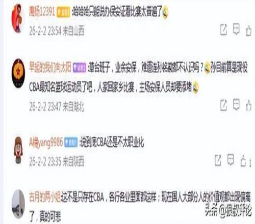 草臺(tái)班子,業(yè)余安保,難道連孫銘徽都不認(rèn)識(shí)嗎?孫目前算是現(xiàn)役CBA最知名籃球運(yùn)動(dòng)員了吧,人家回家鄉(xiāng)比賽,主場安保人員卻要添堵。