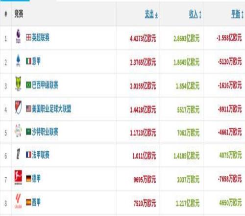 馬競只是西甲的異類。幾年來,冬窗之于西甲近乎并不存在,去年整個聯(lián)賽的引援投入只有2600萬,今年馬競燒了5400萬,才把投入規(guī)模推高到7520萬,依然在五大聯(lián)賽墊底。而賣人獲得1.21億營收,則導(dǎo)致西甲凈投入為-4650萬,是五大聯(lián)賽除法甲外,唯一冬窗“賺錢”的聯(lián)賽。
