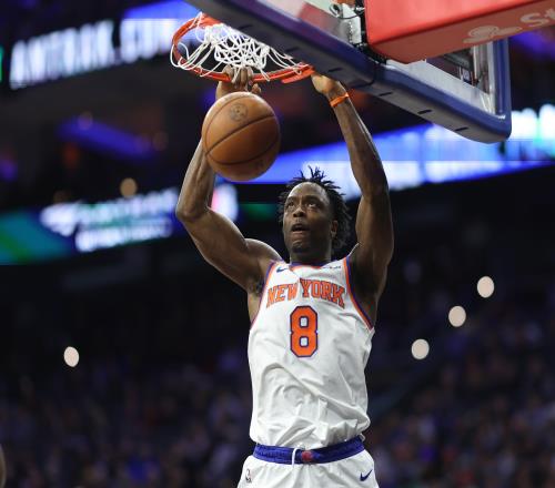 上半場,尼克斯前鋒阿努諾比高效發(fā)揮,出場16分鐘7投4中,三分5中3、罰球5中4拿到15分1籃板1搶斷1蓋帽,正負(fù)值+11。